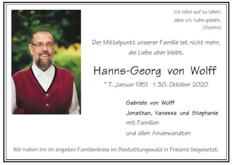 Hanns-Georg von Wolff (zertifizierter SCIL Master seit 2011) ist verstorben. Lasst uns für einen kurzen Moment gemeinsam inne halten und seiner gedenken. Sein Tod führt uns alle einmal mehr die Endlichkeit des Lebens vor Augen. Anlass genug, Euch die Worte von Horaz zuzurufen: CARPE DIEM!
